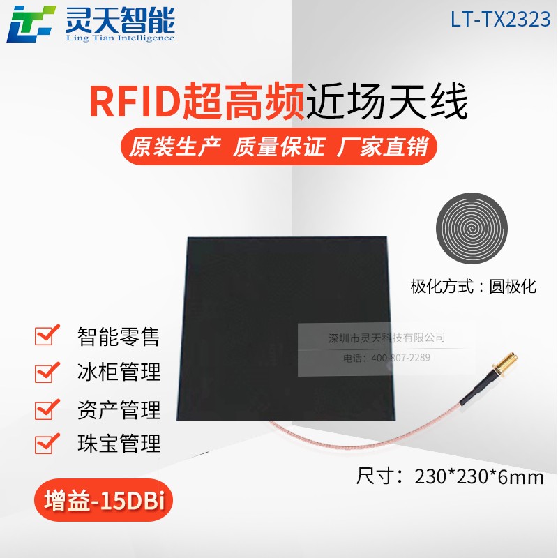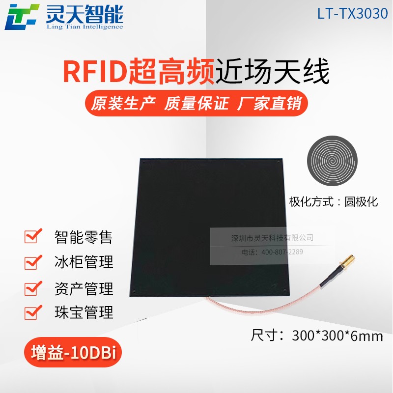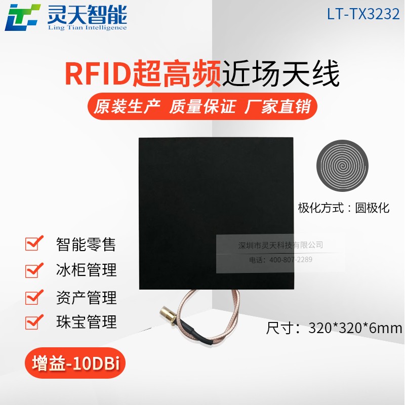 LT-TX3232近場天線具備面積寬、厚度薄、重量輕、場型好的特點,便于安裝在標(biāo)準(zhǔn)展柜,其-10dBi的增益,又收束了RF場型、使得多標(biāo)簽近距離的串讀問題得以解決,搭配超高頻RFID讀寫設(shè)備,效果極佳,線非常薄,適合嵌入式桌面應(yīng)用,可方便應(yīng)用于珠寶、零售POS、圖書館、醫(yī)藥保健等超高頻頻段的RFID場合中。